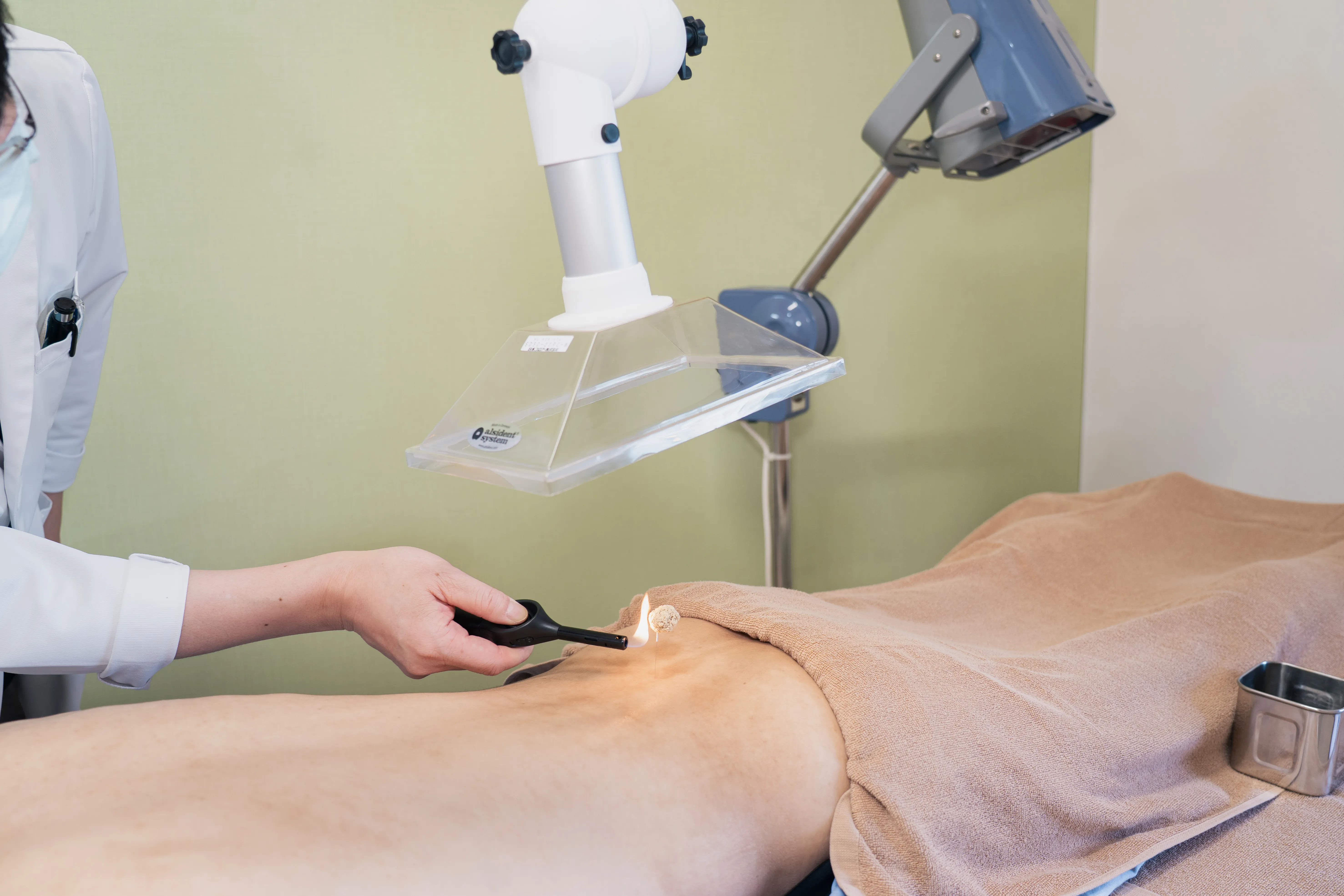 お灸治療に関しては、煙を直接吸引する「灸煙吸引器」を設置しております。